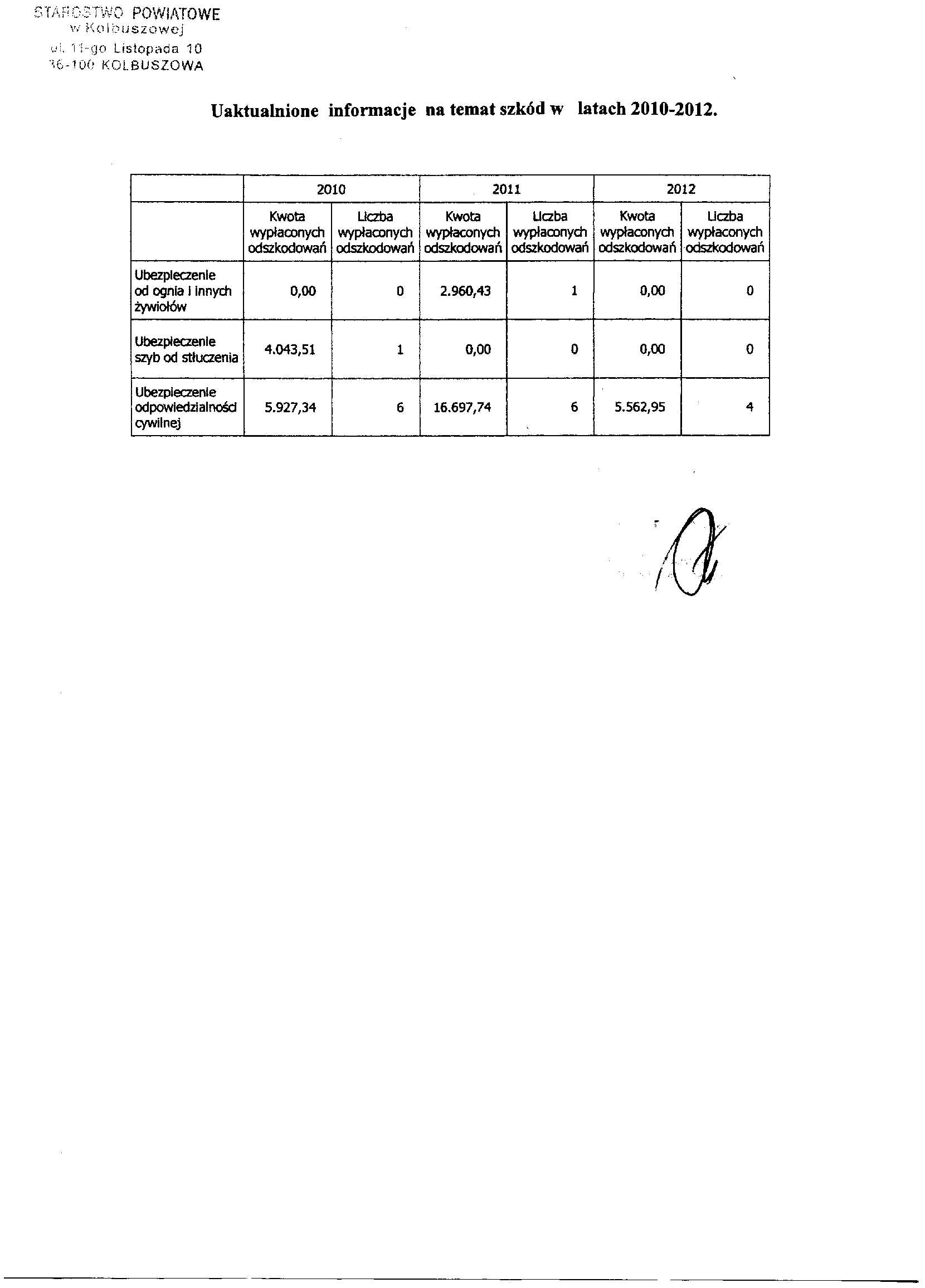 Starostwo Powiatowe w Kolbuszowej zaprasza do złożenia oferty na ubezpieczenie mienia Powiatu Kolbuszowskiego w 2013r.